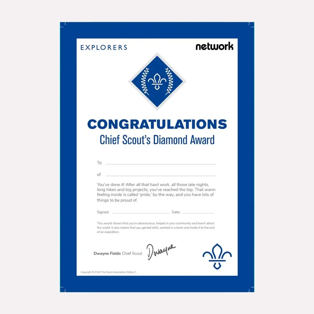 Chief Scout’s Diamond Award Certificate – Pack of 10