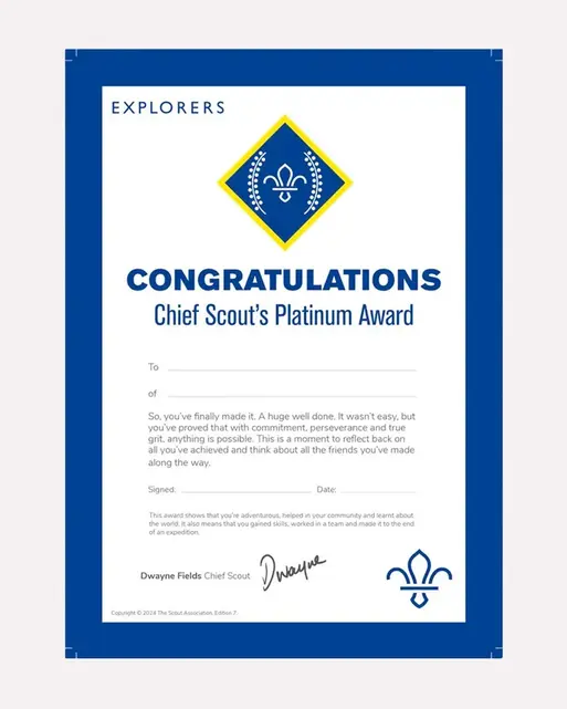 Chief Scout’s Platinum Award Certificate – Pack of 10